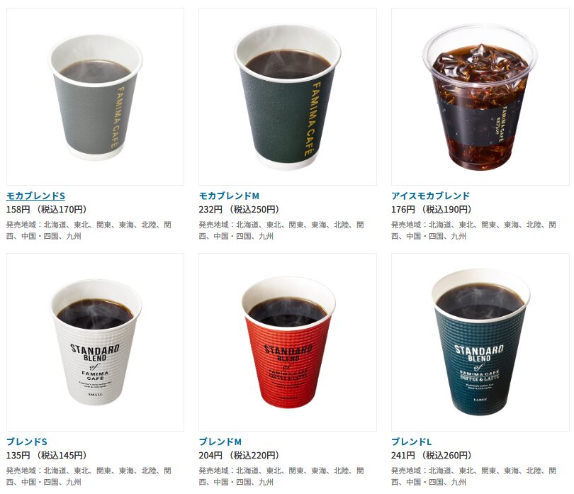 - ファミマのコーヒーのメニュー