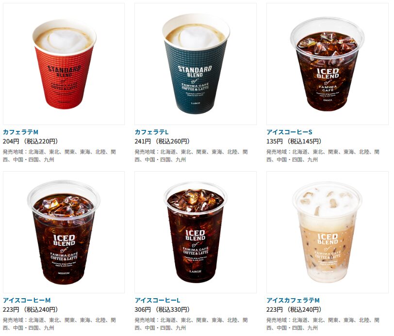 ファミマのコーヒーメニュー一覧